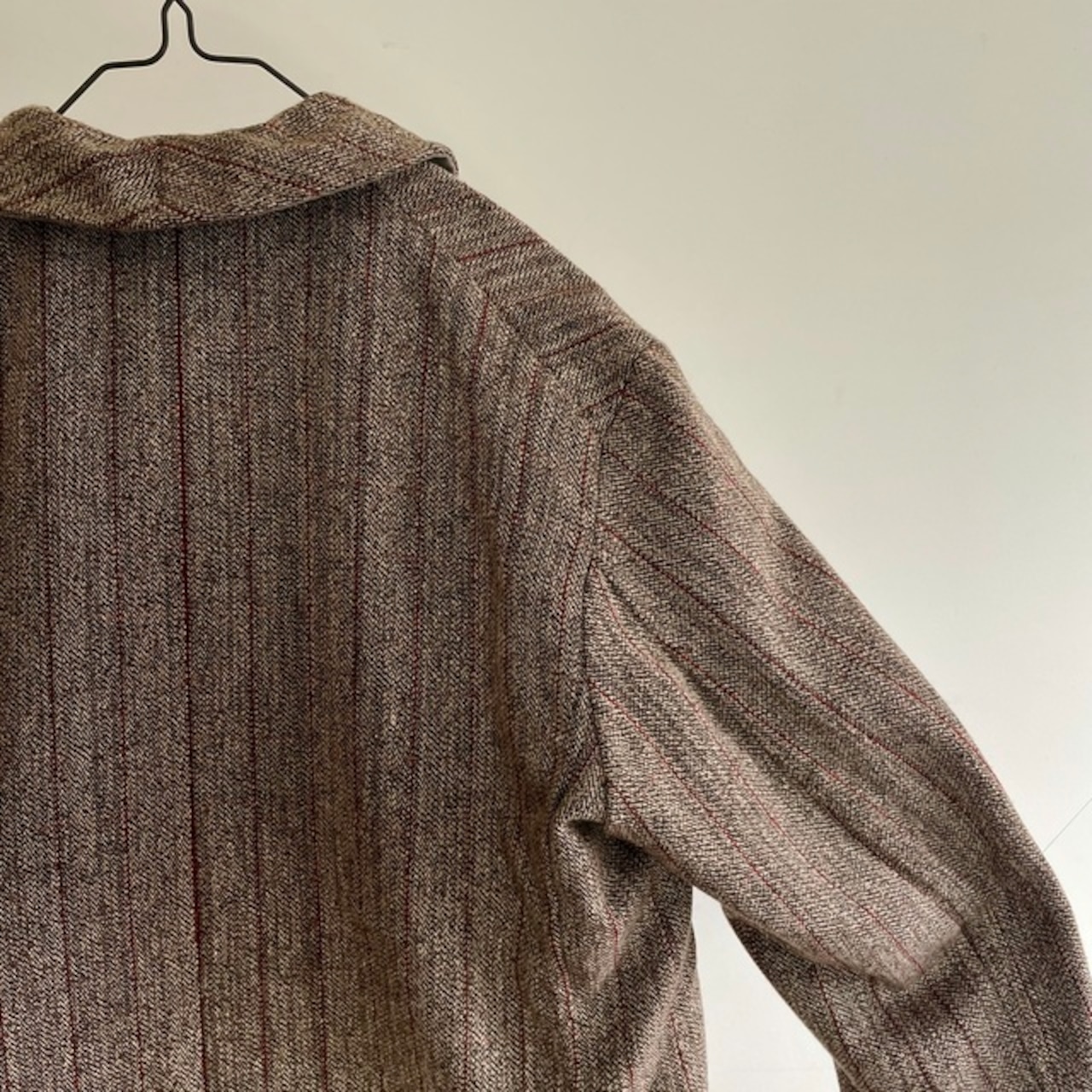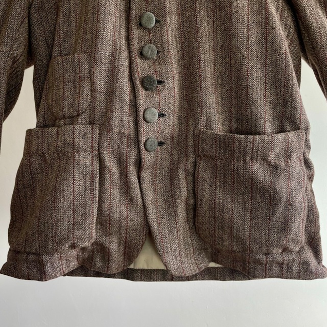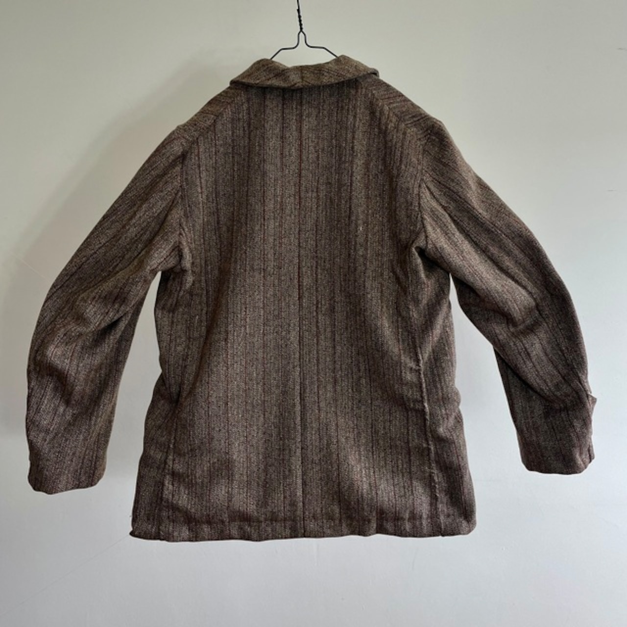 1930-1940 Vintage French Tweed Stripe Wool Fabric Made Old Style Work Jacket