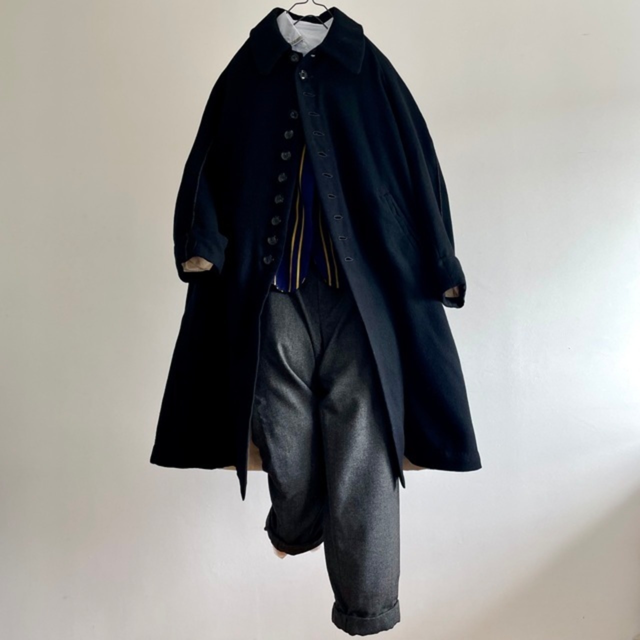 1930年代フランスのPTT(Les Postes, Télégraphes et Téléphones=郵政電信電話局)のオフィサーコートをモデルとしたラグランスリーブのコートです。