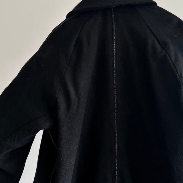 Vintage French Wool Barathea Fabric Made Hand Sewn Over Seam Stitch Raglan-sleeve Coat