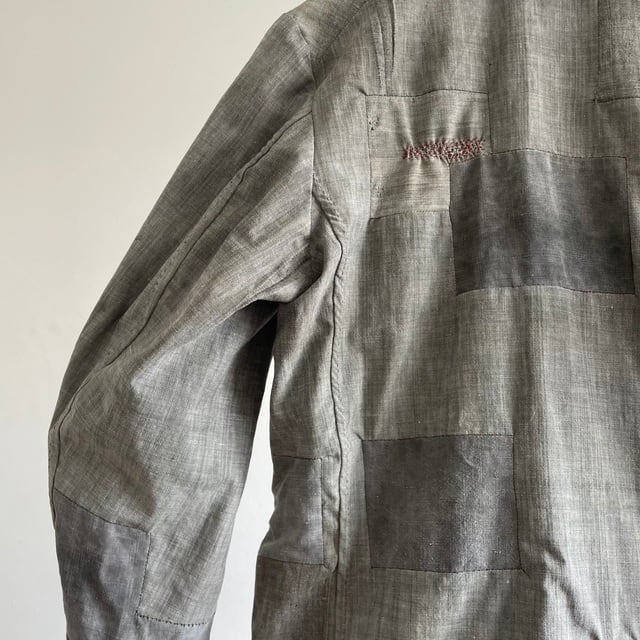1930-1940 Vintage Lots of Hand Patches and Darning Gris de Travil Fabric Old French Work Jacket